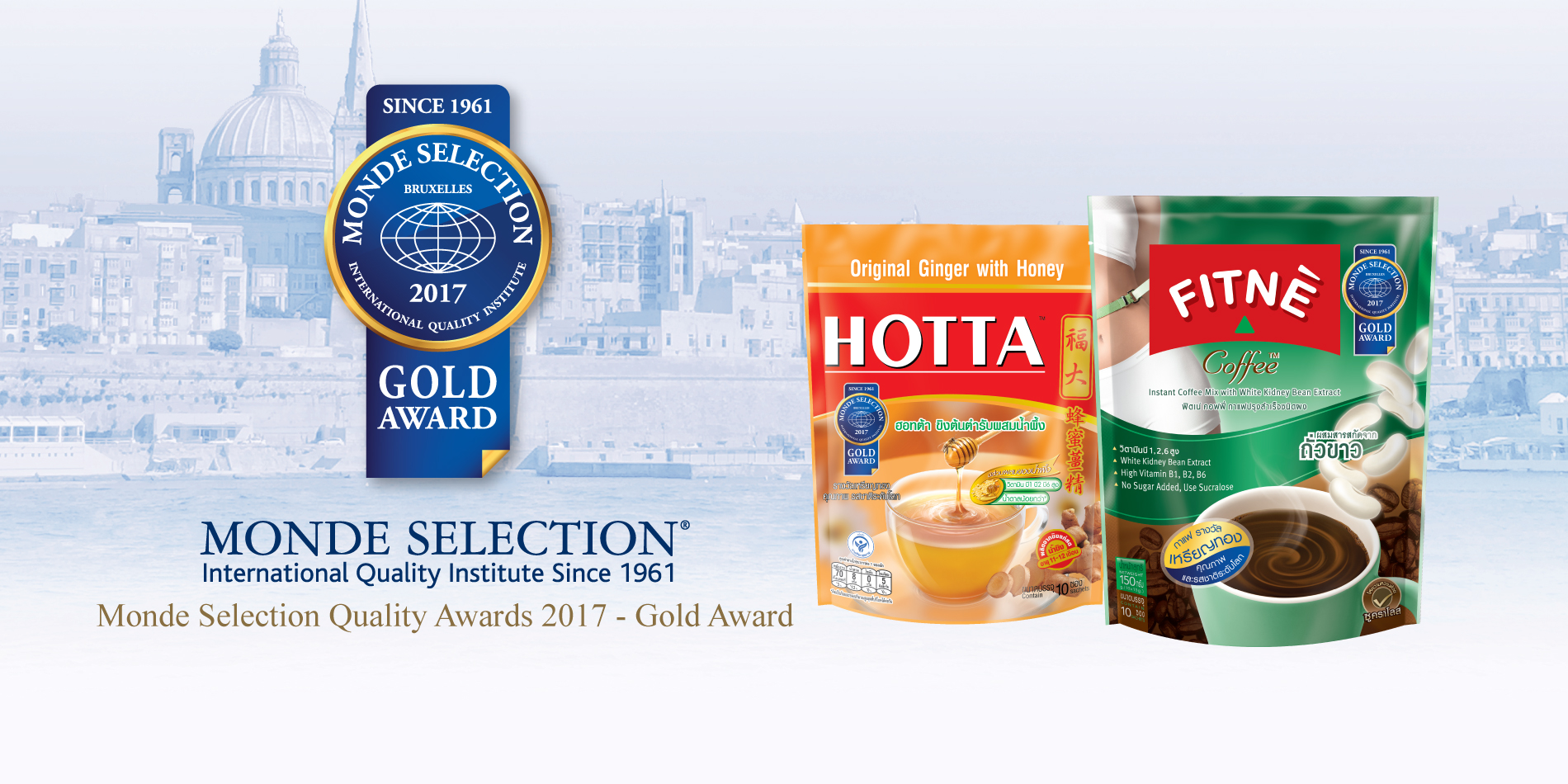 รางวัลเหรียญทองระดับโลก จากสถาบัน Monde Selection ประเภทผลิตภัณฑ์ควบคุมน้ำหนักและดูแลสุขภาพ ที่ “ฟิตเน่” และ “ฮอทต้า” ได้ผ่านเกณฑ์การตัดสินที่ให้ความสำคัญตั้งแต่การคัดสรรวัตถุดิบ ส่วนผสมต่าง ๆ รวมทั้งมาตรฐานกระบวนการผลิต และรสชาติ จากคณะกรรมการตัดสิน และผู้เชี่ยวชาญนานาชาติถึง 70 ท่าน ซึ่งในปี 2017 มีผลิตภัณฑ์ส่งเข้าทดสอบกว่า 3,000 ผลิตภัณฑ์ จาก 84 ประเทศทั่วโลก โดยมีผลิตภัณฑ์ควบคุมน้ำหนักและดูแลสุขภาพ ของฟิตเน่ และฮอทต้า เท่านั้น ที่มาจากประเทศไทย