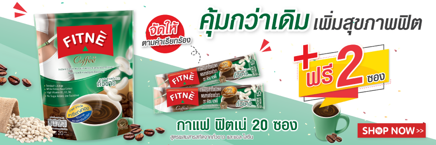 ช้อปเลย >> https://www.liveandfit.com/th/ฟิตเน่-คอฟฟี่-สูตรผสมสารสกัดจากถั่วขาวและแอล-ไลซีน-ขนาด20ซอง.html